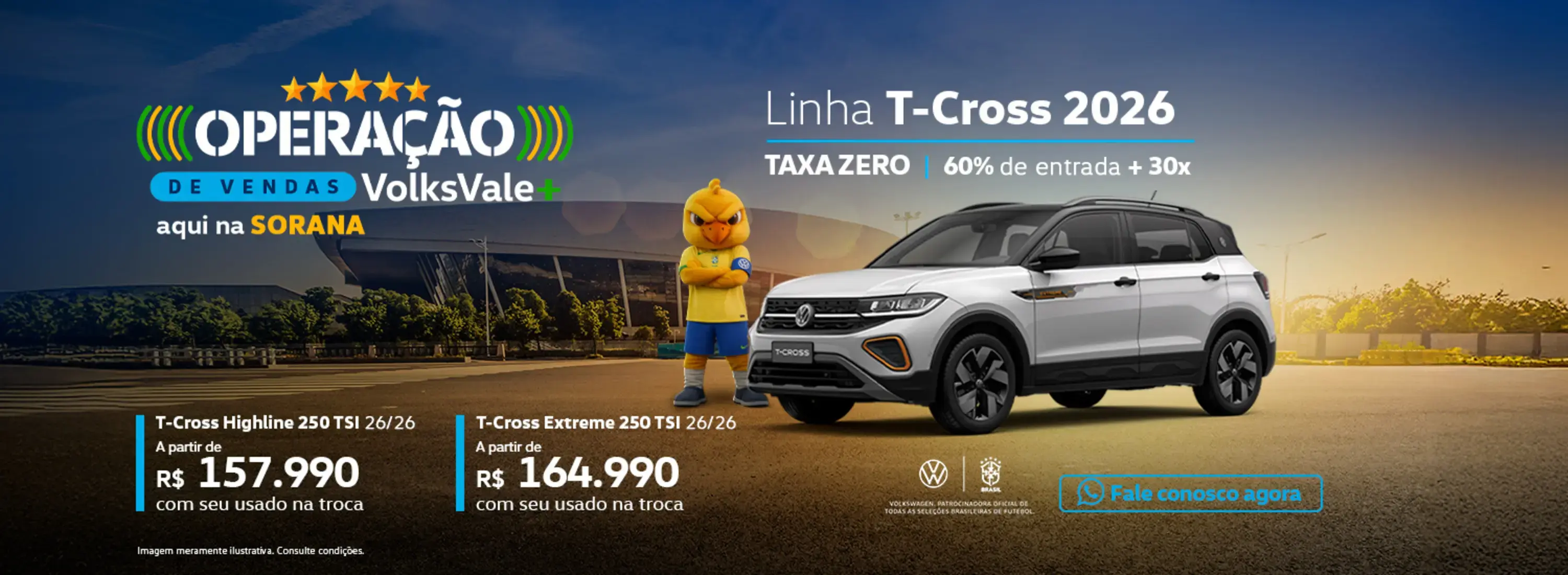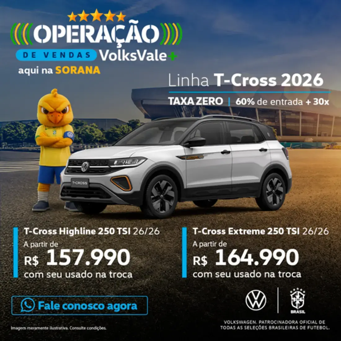 A história da Sorana começa com a Volkswagen, a primeira montadora a ser representada pelo grupo. Com 1 unidade em ponto estratégico da cidade, na Av. Braz Leme, a Sorana se mantém entre líderes em vendas de veículos da marca na região da grande São Paulo. A qualidade em vendas, já premiada diversas vezes, é refletida também nos centros de assistência técnica, reconhecidos pela montadora e ISO 9001 pela excelência na realização dos serviços. Além de toda linha Volkswagen a Sorana também se destaca pela qualidade, volume e seleção do estoque e carros seminovos revisados com garantia e procedência